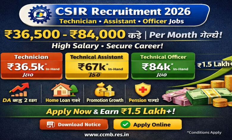 CSIR Recruitment 2026 Salary: Technician, Technical Assistant & Officer posts with ₹39,545 to ₹90,100 monthly…