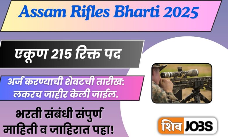 Assam Rifles Bharti 2025 |असम राइफल्स अंतर्गत भरती! असा करा अर्ज!