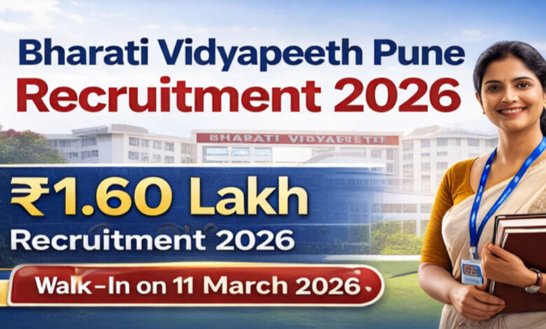 Bharati Vidyapeeth Pune Recruitment 2026 announced 69 faculty vacancies with salary up to ₹1.60 lakh per month. Walk-in interview on 11 March 2026. Check eligibility, pay scale and career benefits. Bharati Vidyapeeth Pune Bharti 2026: ₹1.44 Lakh Salary + Academic Prestige + Long-Term Career Security | Direct Interview for 69 Posts.