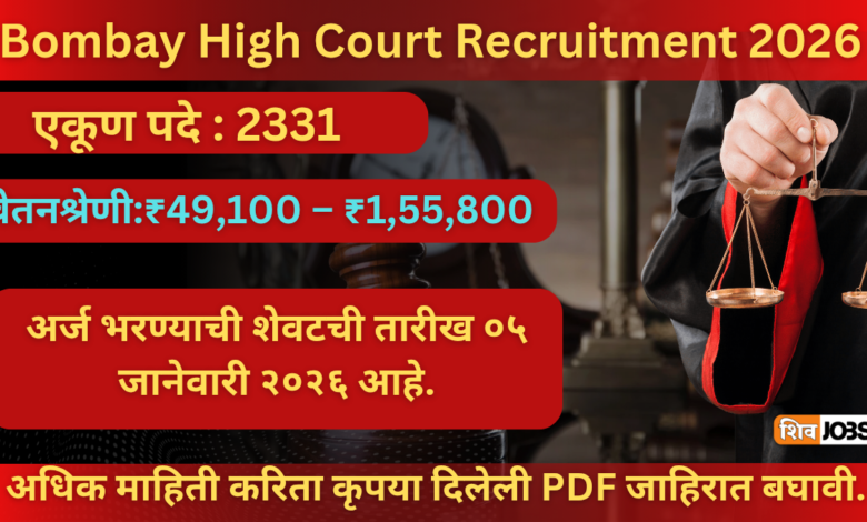 Bombay High Court Bharti 2026: 2331 पदांची ऐतिहासिक सरकारी भरती – सुवर्णसंधी गमावू नका! सरकारी नोकरीचं स्वप्न पाहणाऱ्या लाखो तरुणांसाठी मुंबई उच्च न्यायालय (Bombay High Court) कडून एक आश्चर्यकारक आणि आयुष्य बदलणारी भरती जाहिरात 2026 साठी प्रकाशित करण्यात आली आहे. Clerk, Peon, Driver, Stenographer अशा विविध पदांसाठी तब्बल 2331 रिक्त जागा भरल्या जाणार आहेत. ही भरती म्हणजे केवळ नोकरी नाही, तर प्रतिष्ठा, स्थैर्य आणि सुरक्षित भविष्य आहे.