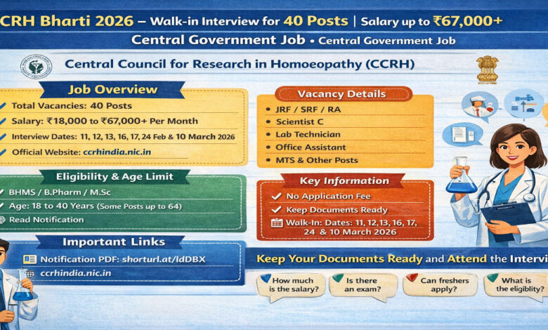 CCRH Bharti 2026 – Walk-in Interview for 40 Posts | Salary up to ₹67,000+ | Central Government Job