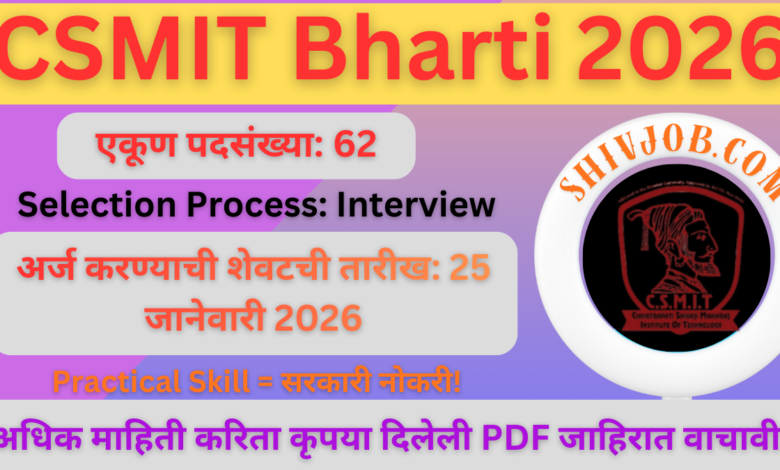 अनेक वेळा आयुष्यात संधी शांतपणे येते… CSMIT Bharti 2026 ही तशीच एक संधी आहे.