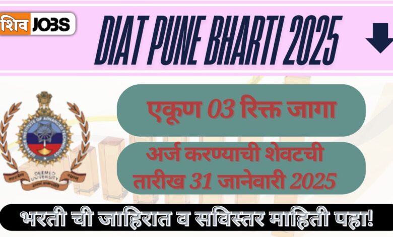 DIAT Pune Bharti 2025 |पुणे येथे सरकारी नोकरीची संधी – अर्ज करण्यासाठी शेवटची तारीख 31 जानेवारी 2025!