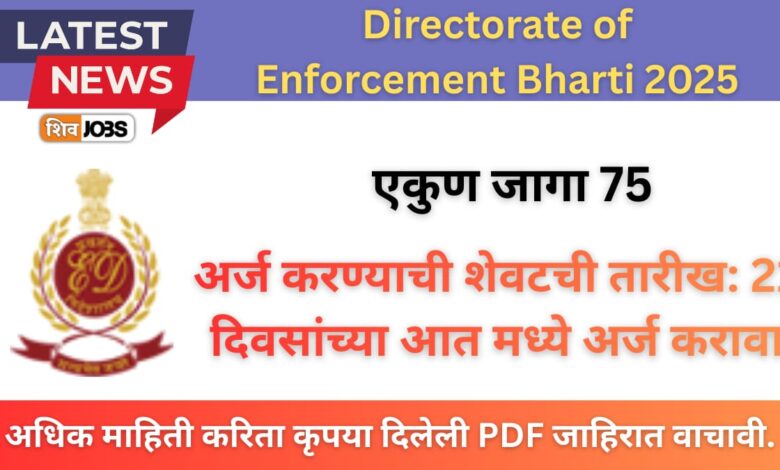 Directorate of Enforcement Bharti 2025 ही एक powerful legal career opportunity आहे. जर तुम्ही Law Graduate असाल आणि high salary government legal jobs शोधत असाल, तर ही भरती नक्कीच miss करू नका.