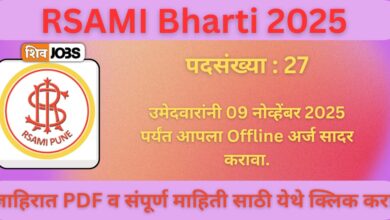 - अर्जाची अंतिम तारीख : 07 ऑगस्ट 2025