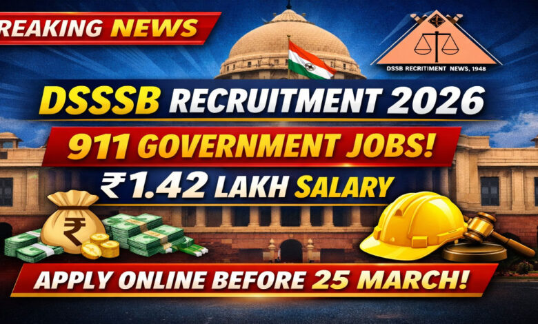 DSSSB Recruitment 2026 Apply Online – 911 Govt Vacancies, Salary ₹1,42,400 | Delhi Govt Jobs