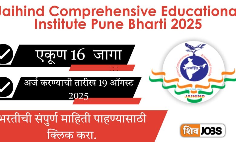 Jaihind Comprehensive Educational Institute Pune Bharti 2025: संपूर्ण माहिती – जयहिंद कॉम्प्रिहेन्सिव्ह एज्युकेशनल इन्स्टिट्यूट भरती २०२५ नोकरीची उत्तम संधी!
