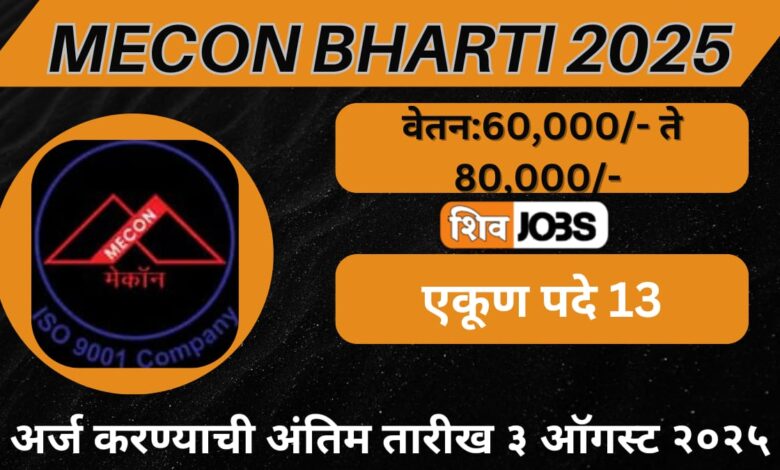 MECON Bharti 2025: मेकॉन लिमिटेड अंतर्गत नवीन भरती जाहीर!