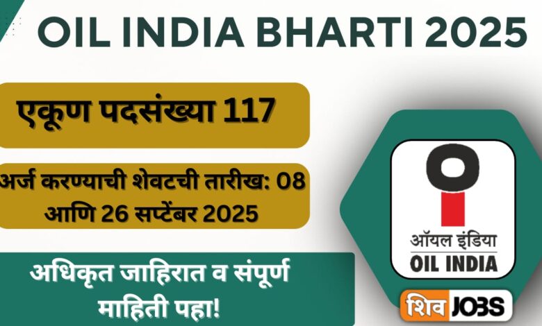 या लेखात आपण Oil India Bharti 2025 बद्दल सविस्तर माहिती पाहणार आहोत – जसे की पदांची नावे, एकूण जागा, शैक्षणिक पात्रता, पगारमान, अर्ज प्रक्रिया, महत्वाच्या तारखा, आवश्यक कागदपत्रे, निवड प्रक्रिया, तसेच FAQ विभाग.