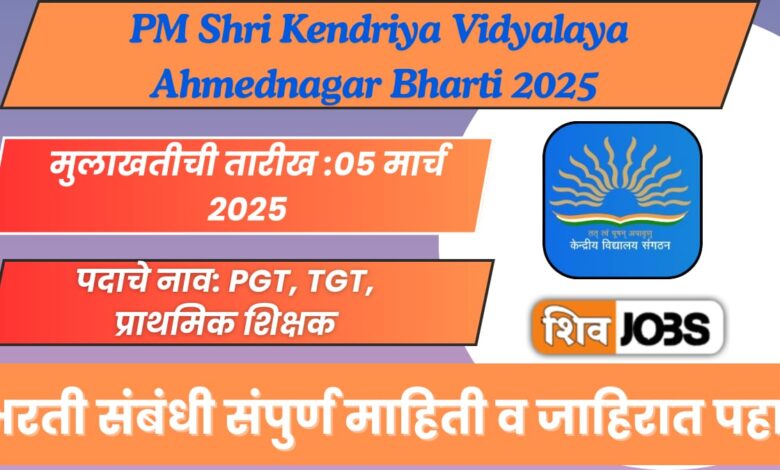 PM Shri Kendriya Vidyalaya Ahmednagar Bharti 2025 – संपूर्ण माहिती