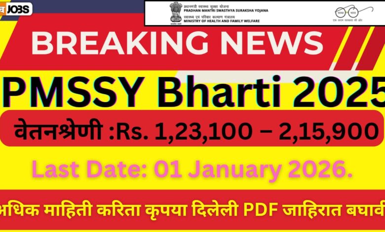 PMSSY Bharti 2025 Ultimate Opportunity: 01 Premium Vacancy Notification | High Salary Govt Job जर तुम्ही Central Government मधील high-salary administrative position शोधत असाल, तर ही PMSSY Bharti 2025 Ultimate Opportunity तुमच्यासाठीच आहे! Ministry of Health & Family Welfare, PMSSY Division अंतर्गत “Deputy Director (Administration)” या पदाची भरती जाहीर केली आहे. ही Vacancy अत्यंत prestigious, secure आणि high-CPC career option मानली जाते.
