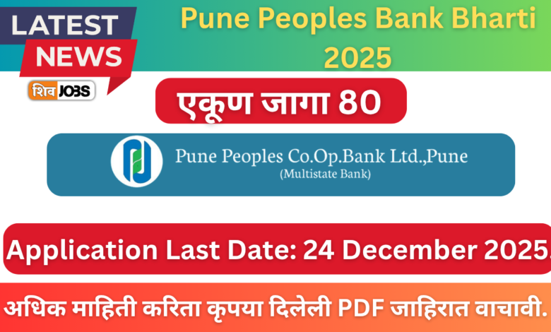 पुणे पीपल्स को-ऑपरेटिव्ह बँक ही एक स्थापित आणि विश्वासार्ह बँक असून येथे मिळणारी नोकरी उमेदवाराला High Growth Banking Career प्रदान करते. अर्ज प्रक्रिया पूर्णपणे Online आहे आणि शेवटची तारीख 24 डिसेंबर 2025 आहे.