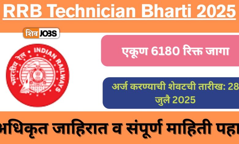 RRB Technician Bharti 2025 भारतीय रेल्वे विभागात नोकरी मिळविण्याचे स्वप्न पाहणाऱ्या उमेदवारांसाठी आनंदाची बातमी आहे. रेल्वे भरती मंडळ (RRB) ने 2025 सालासाठी ‘तंत्रज्ञ ग्रेड-I सिग्नल’ आणि ‘तंत्रज्ञ ग्रेड III’ पदांच्या एकूण 6180 जागांसाठी भरती प्रक्रिया जाहीर केली आहे. या भरतीद्वारे लाखो उमेदवारांना सरकारी नोकरीची संधी मिळणार आहे. हा लेख तुम्हाला या भरतीसंबंधी सर्व तपशील सोप्या भाषेत देईल.