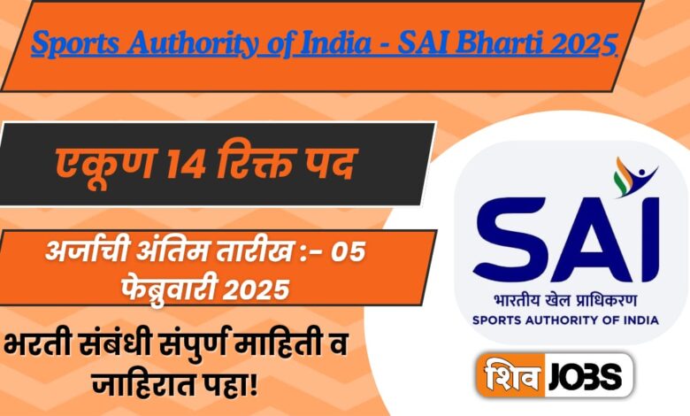Sports Authority of India – SAI Bharti 2025 | भारतीय क्रीडा प्राधिकरण भरती: 14 रिक्त जागांसाठी अर्ज करा आजच!