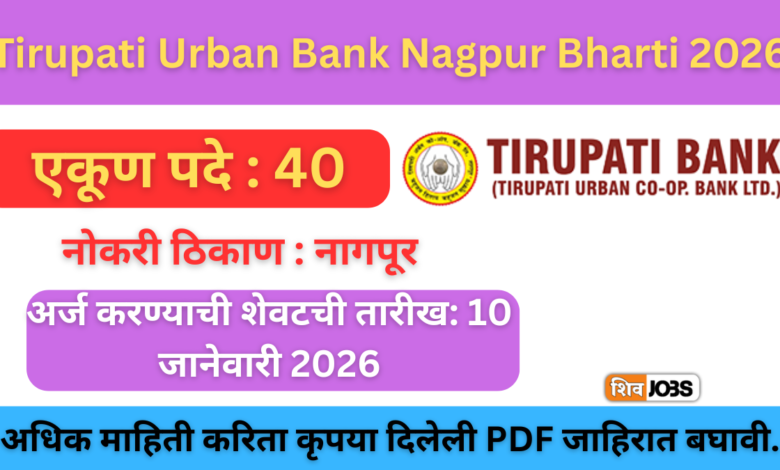 Tirupati Urban Bank Nagpur Bharti 2026: 40 बँक नोकऱ्यांची सुवर्णसंधी – त्वरित अर्ज करा!